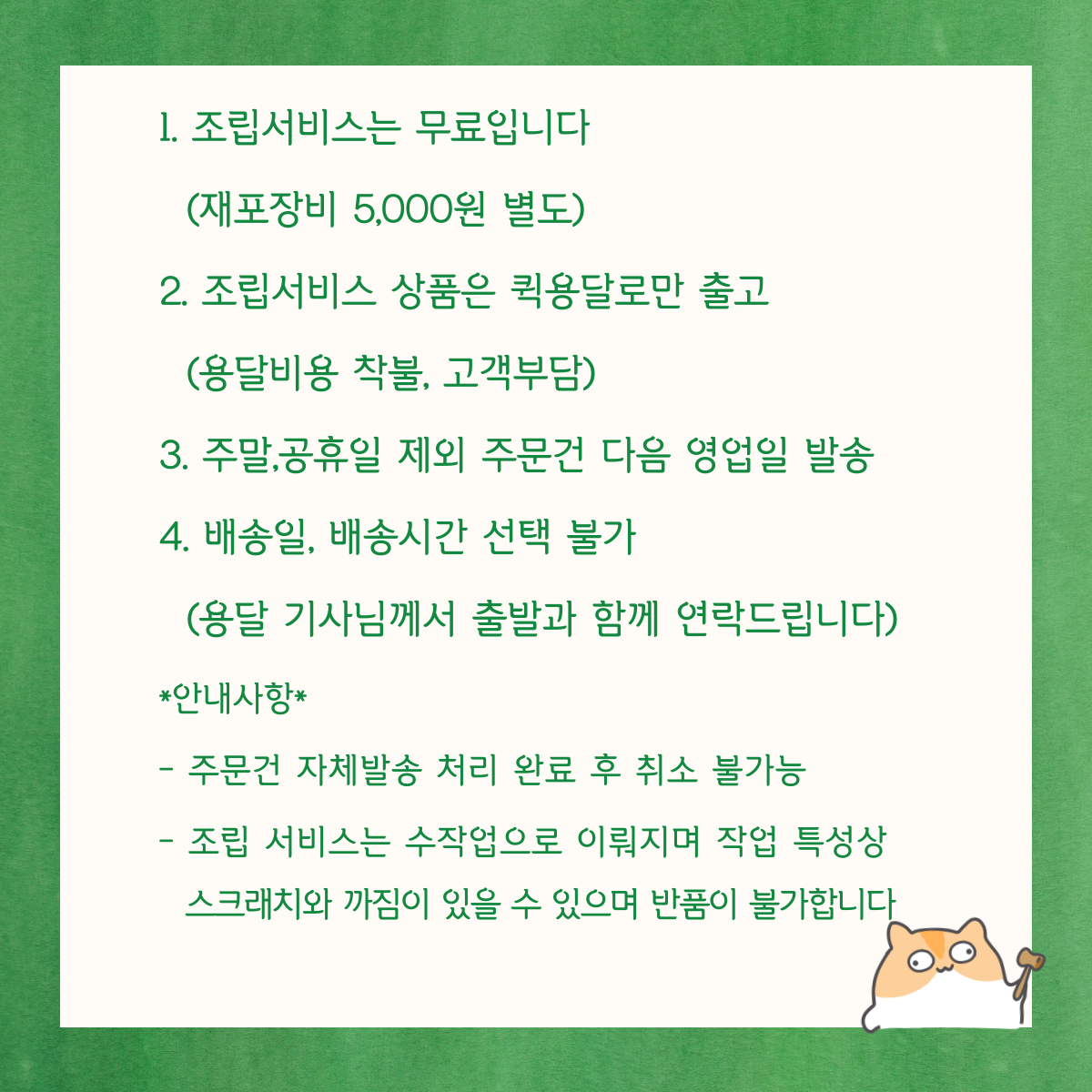 물류 직접수령지 : 경기도 고양시 일산서구 송포로164번길 127-23