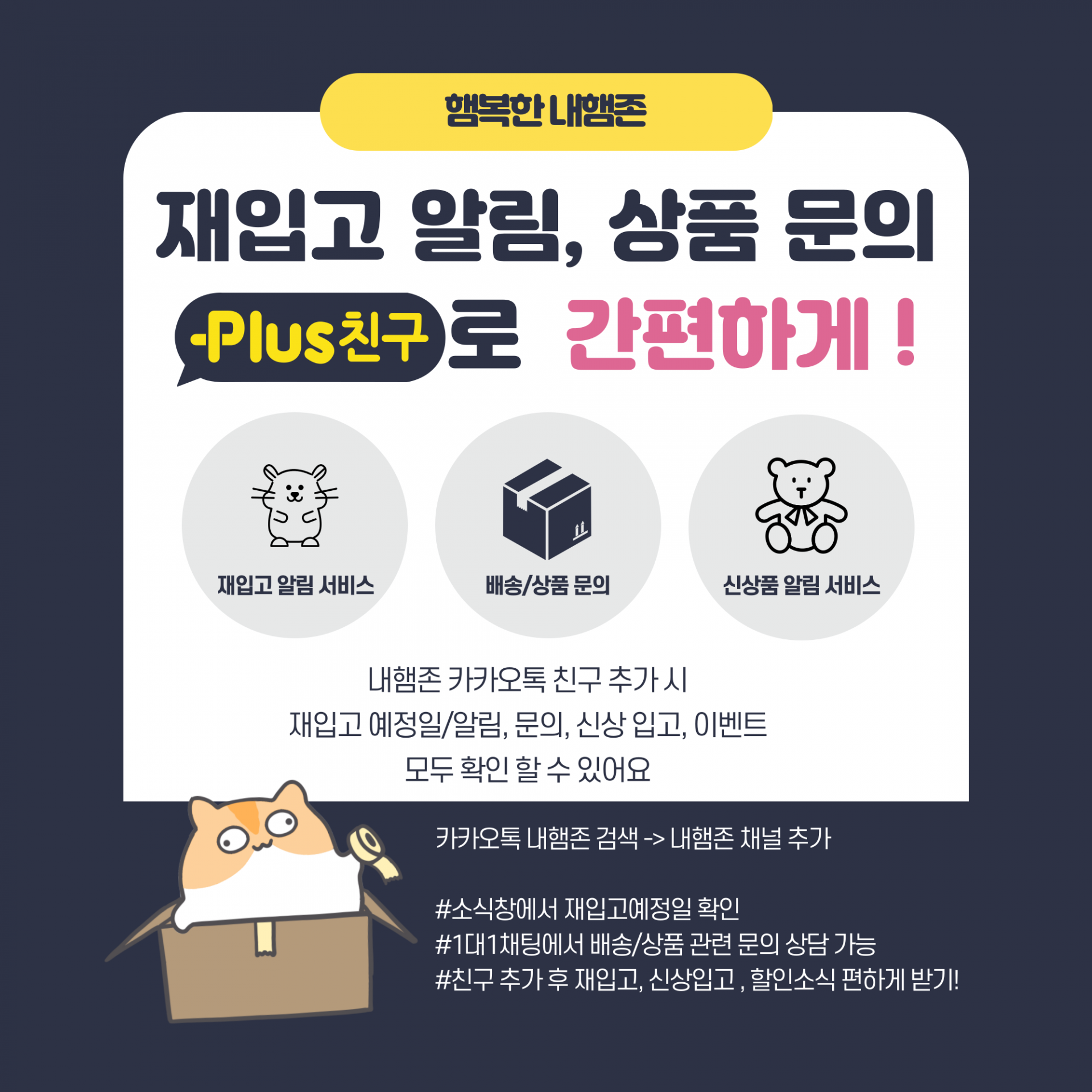 친구추가방법 : 카카오톡 - 내햄존 검색 - 채널 추가